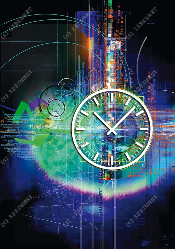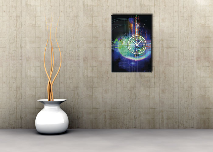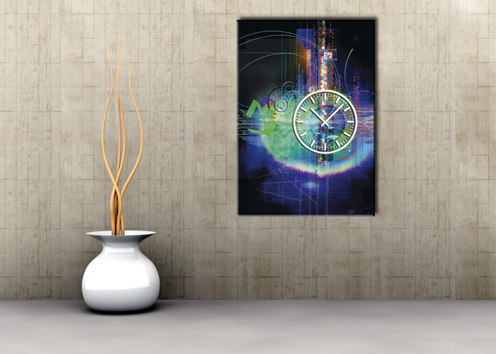 Das künstlerische Motiv wird auf eine hochwertige Aluminium-Dibond-Platte übertragen. Durch den hochauflösenden Digitaldruck besticht der Druck mit feinen Details und klaren Farben. Zudem werden die Oberflächen der Wanduhr mit einer seidenmatten, hauchdünnen, kratzfesten UV-Schutzfolie versehen. So ist die Uhr langfristig geschützt und es entstehen keine störenden Spiegelungen. Die ökologischen Latextinten sind zudem besonders geeignete Materialien für eine langlebige und gestochen scharfe Bildqualität.