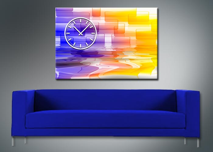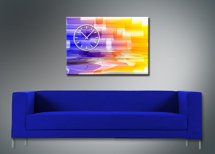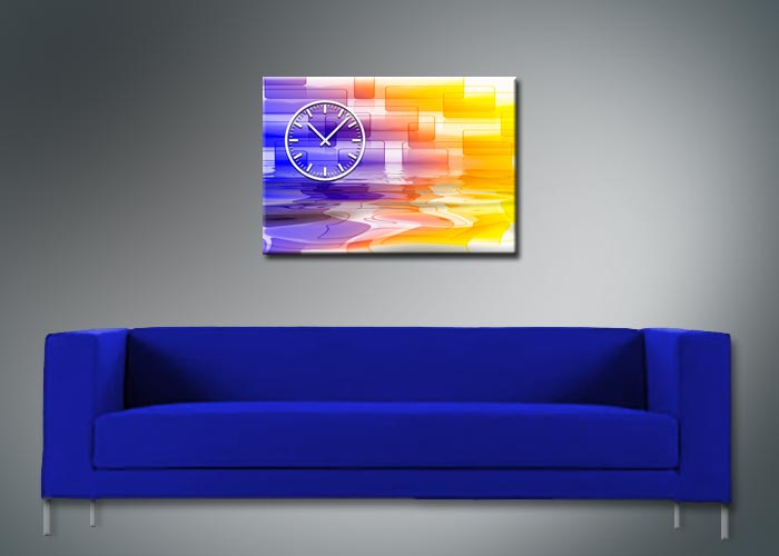 Das künstlerische Motiv wird auf eine hochwertige Aluminium-Dibond-Platte übertragen. Durch den hochauflösenden Digitaldruck besticht der Druck mit feinen Details und klaren Farben. Zudem werden die Oberflächen der Wanduhr mit einer seidenmatten, hauchdünnen, kratzfesten UV-Schutzfolie versehen. So ist die Uhr langfristig geschützt und es entstehen keine störenden Spiegelungen. Die ökologischen Latextinten sind zudem besonders geeignete Materialien für eine langlebige und gestochen scharfe Bildqualität.