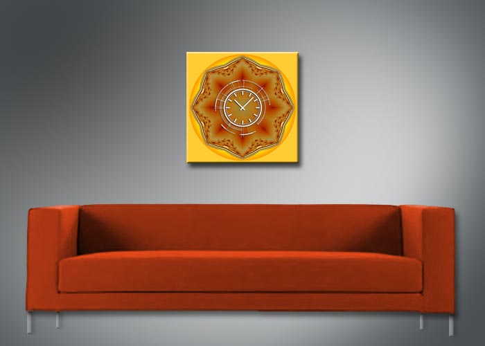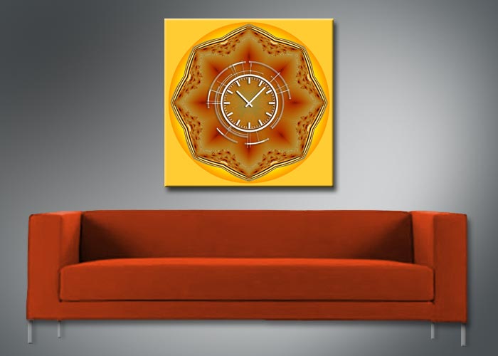 Das künstlerische Motiv wird auf eine hochwertige Aluminium-Dibond-Platte übertragen. Durch den hochauflösenden Digitaldruck besticht der Druck mit feinen Details und klaren Farben. Zudem werden die Oberflächen der Wanduhr mit einer seidenmatten, hauchdünnen, kratzfesten UV-Schutzfolie versehen. So ist die Uhr langfristig geschützt und es entstehen keine störenden Spiegelungen. Die ökologischen Latextinten sind zudem besonders geeignete Materialien für eine langlebige und gestochen scharfe Bildqualität.