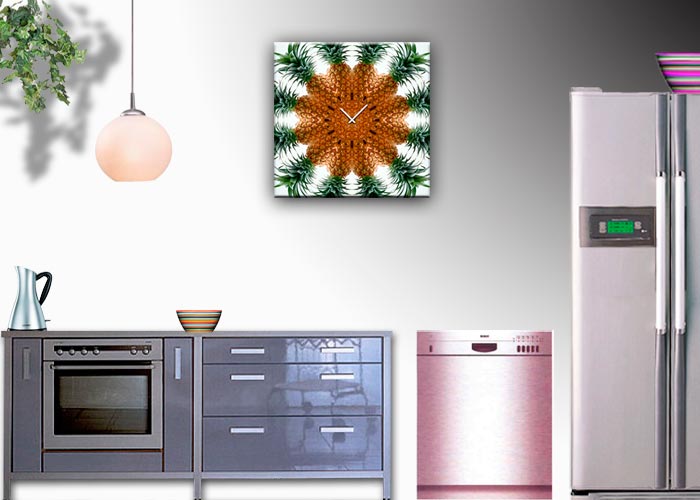 Das künstlerische Motiv wird auf eine hochwertige Aluminium-Dibond-Platte übertragen. Durch den hochauflösenden Digitaldruck besticht der Druck mit feinen Details und klaren Farben. Zudem werden die Oberflächen der Wanduhr mit einer seidenmatten, hauchdünnen, kratzfesten UV-Schutzfolie versehen. So ist die Uhr langfristig geschützt und es entstehen keine störenden Spiegelungen. Die ökologischen Latextinten sind zudem besonders geeignete Materialien für eine langlebige und gestochen scharfe Bildqualität.