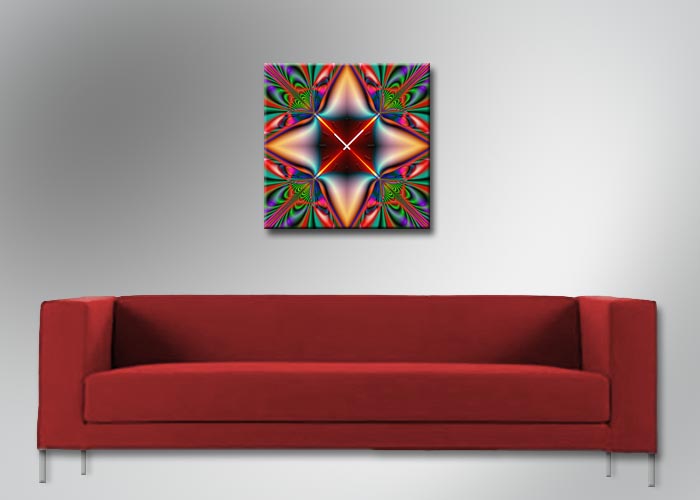 Das künstlerische Motiv wird auf eine hochwertige Aluminium-Dibond-Platte übertragen. Durch den hochauflösenden Digitaldruck besticht der Druck mit feinen Details und klaren Farben. Zudem werden die Oberflächen der Wanduhr mit einer seidenmatten, hauchdünnen, kratzfesten UV-Schutzfolie versehen. So ist die Uhr langfristig geschützt und es entstehen keine störenden Spiegelungen. Die ökologischen Latextinten sind zudem besonders geeignete Materialien für eine langlebige und gestochen scharfe Bildqualität.