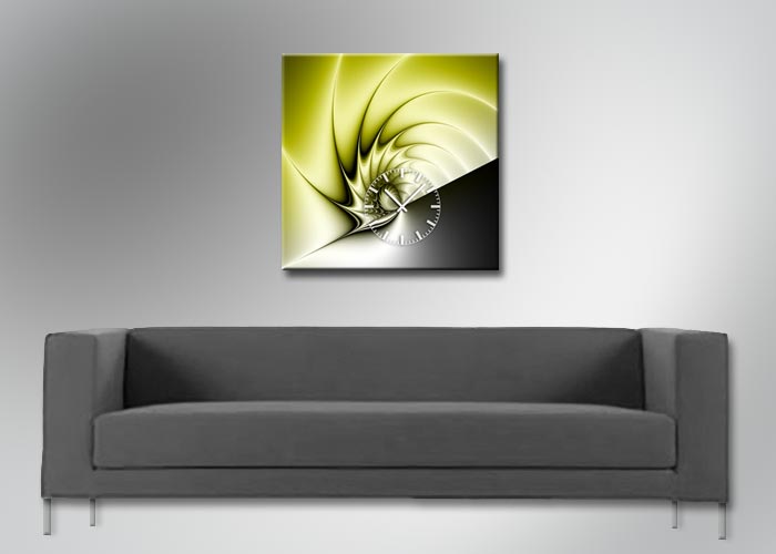 Das künstlerische Motiv wird auf eine hochwertige Aluminium-Dibond-Platte übertragen. Durch den hochauflösenden Digitaldruck besticht der Druck mit feinen Details und klaren Farben. Zudem werden die Oberflächen der Wanduhr mit einer seidenmatten, hauchdünnen, kratzfesten UV-Schutzfolie versehen. So ist die Uhr langfristig geschützt und es entstehen keine störenden Spiegelungen. Die ökologischen Latextinten sind zudem besonders geeignete Materialien für eine langlebige und gestochen scharfe Bildqualität.