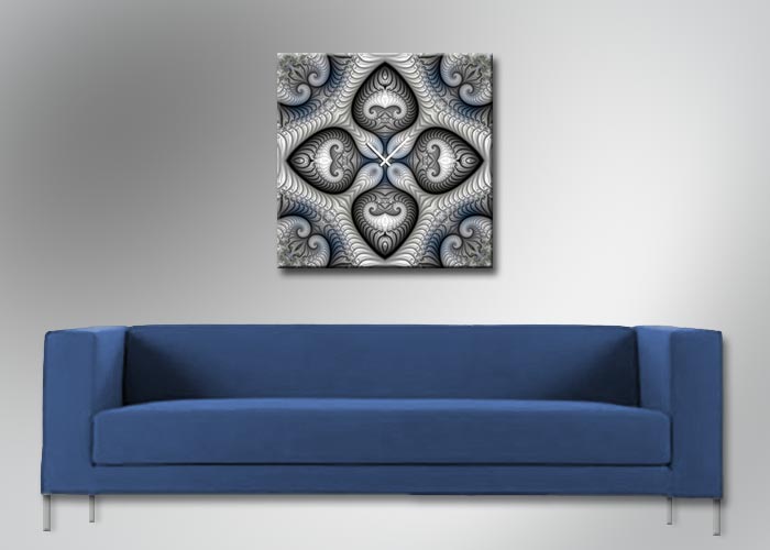 Das künstlerische Motiv wird auf eine hochwertige Aluminium-Dibond-Platte übertragen. Durch den hochauflösenden Digitaldruck besticht der Druck mit feinen Details und klaren Farben. Zudem werden die Oberflächen der Wanduhr mit einer seidenmatten, hauchdünnen, kratzfesten UV-Schutzfolie versehen. So ist die Uhr langfristig geschützt und es entstehen keine störenden Spiegelungen. Die ökologischen Latextinten sind zudem besonders geeignete Materialien für eine langlebige und gestochen scharfe Bildqualität.