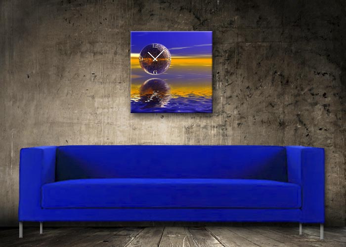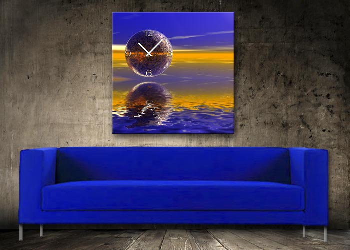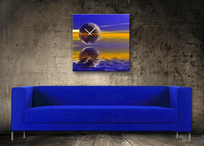 Das künstlerische Motiv wird auf eine hochwertige Aluminium-Dibond-Platte übertragen. Durch den hochauflösenden Digitaldruck besticht der Druck mit feinen Details und klaren Farben. Zudem werden die Oberflächen der Wanduhr mit einer seidenmatten, hauchdünnen, kratzfesten UV-Schutzfolie versehen. So ist die Uhr langfristig geschützt und es entstehen keine störenden Spiegelungen. Die ökologischen Latextinten sind zudem besonders geeignete Materialien für eine langlebige und gestochen scharfe Bildqualität.