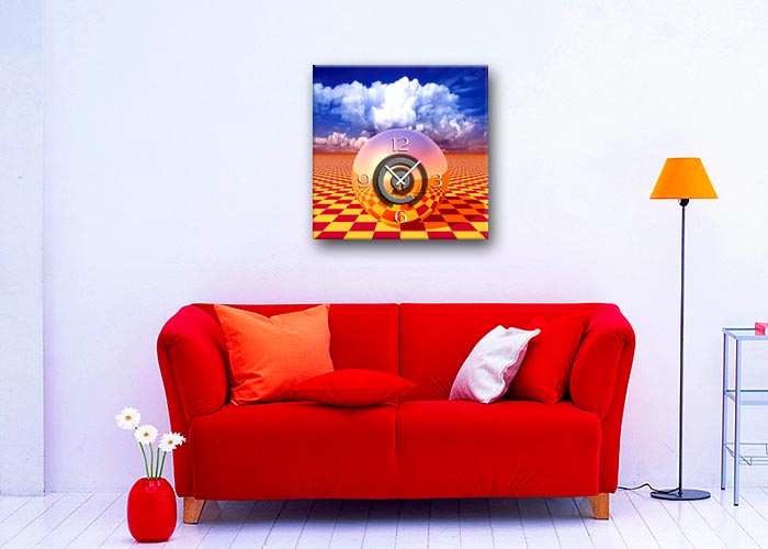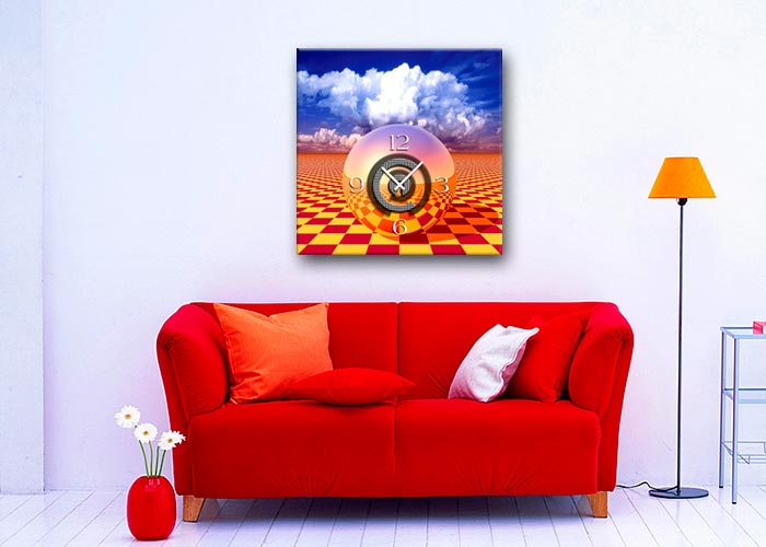 Das künstlerische Motiv wird auf eine hochwertige Aluminium-Dibond-Platte übertragen. Durch den hochauflösenden Digitaldruck besticht der Druck mit feinen Details und klaren Farben. Zudem werden die Oberflächen der Wanduhr mit einer seidenmatten, hauchdünnen, kratzfesten UV-Schutzfolie versehen. So ist die Uhr langfristig geschützt und es entstehen keine störenden Spiegelungen. Die ökologischen Latextinten sind zudem besonders geeignete Materialien für eine langlebige und gestochen scharfe Bildqualität.