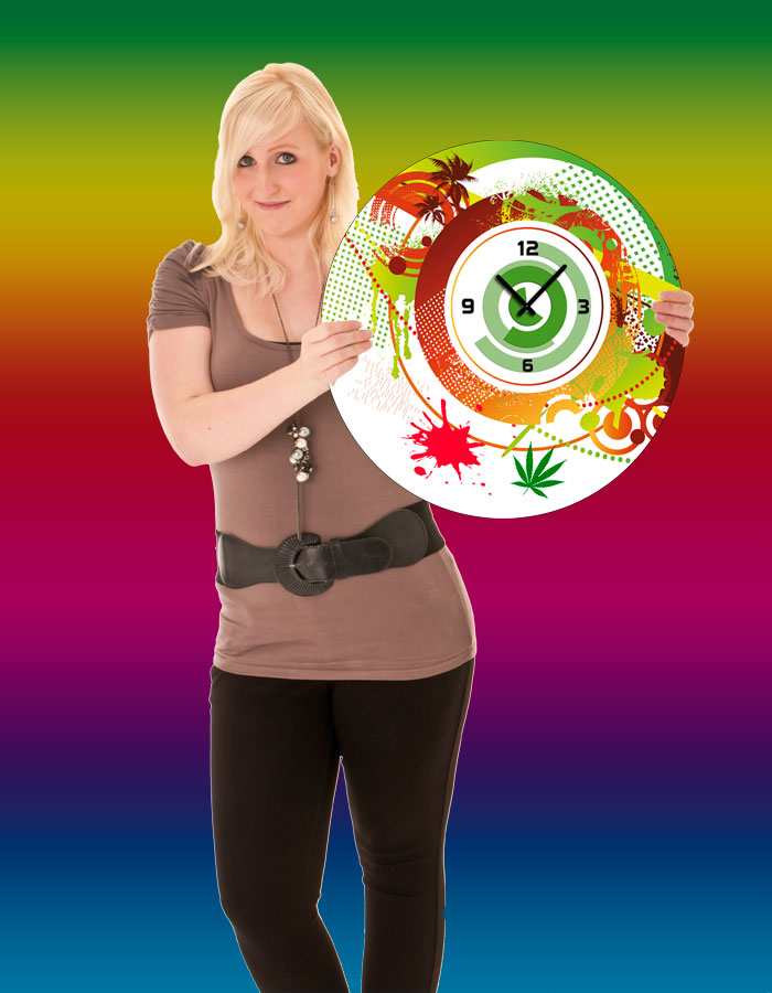 Das künstlerische Motiv wird auf eine hochwertige Aluminium-Dibond-Platte übertragen. Durch den hochauflösenden Digitaldruck besticht der Druck mit feinen Details und klaren Farben. Zudem werden die Oberflächen der Wanduhr mit einer seidenmatten, hauchdünnen, kratzfesten UV-Schutzfolie versehen. So ist die Uhr langfristig geschützt und es entstehen keine störenden Spiegelungen. Die ökologischen Latextinten sind zudem besonders geeignete Materialien für eine langlebige und gestochen scharfe Bildqualität.