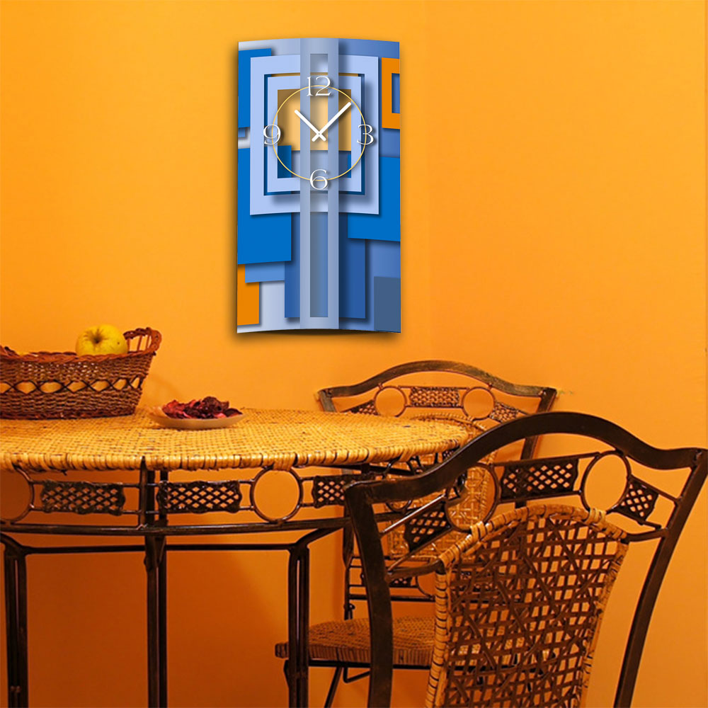 Abstrakt blau hochkant Designer Wanduhr modernes Wanduhren Design leise kein ticken dixtime 3DS-0007