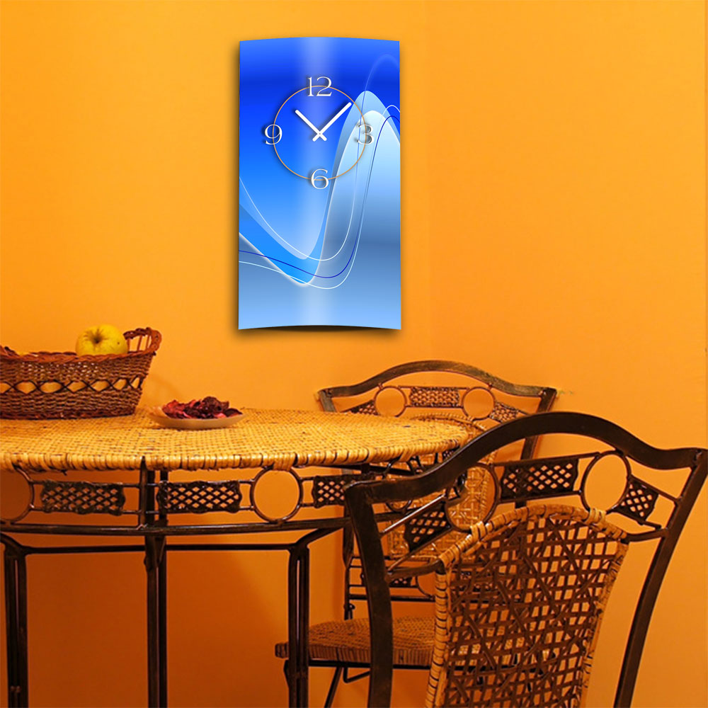 Abstrakt blau hochkant Designer Wanduhr modernes Wanduhren Design leise kein ticken dixtime 3DS-0023