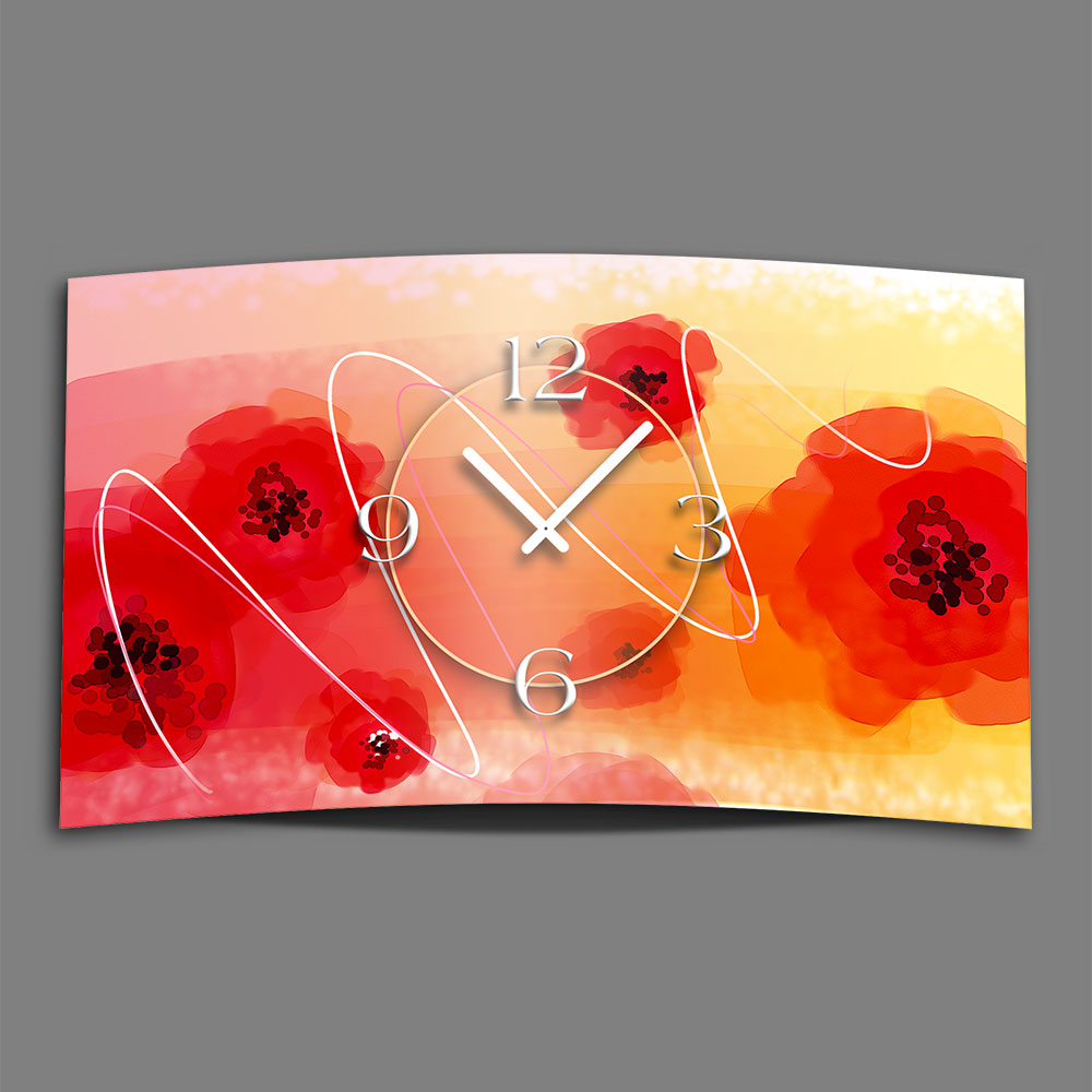 Abstrakt rote Rosen Designer Wanduhr modernes Wanduhren Design leise kein ticken dixtime 3DS-0139
