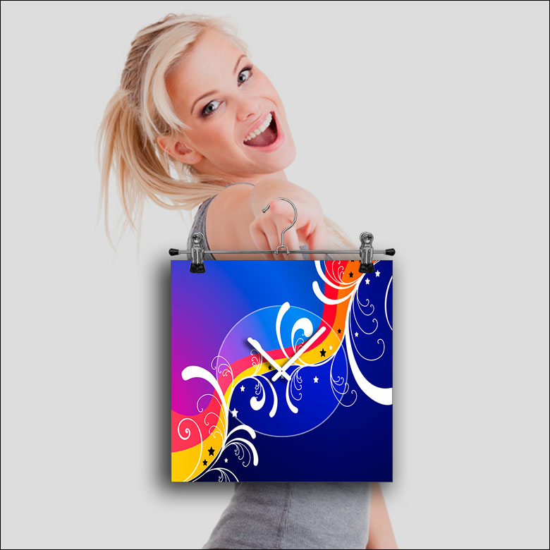 Das künstlerische Motiv wird auf eine hochwertige Aluminium-Dibond-Platte übertragen. Durch den hochauflösenden Digitaldruck besticht der Druck mit feinen Details und klaren Farben. Zudem werden die Oberflächen der Wanduhr mit einer seidenmatten, hauchdünnen, kratzfesten UV-Schutzfolie versehen. So ist die Uhr langfristig geschützt und es entstehen keine störenden Spiegelungen. Die ökologischen Latextinten sind zudem besonders geeignete Materialien für eine langlebige und gestochen scharfe Bildqualität.