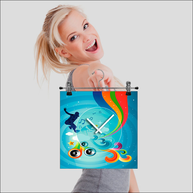 Das künstlerische Motiv wird auf eine hochwertige Aluminium-Dibond-Platte übertragen. Durch den hochauflösenden Digitaldruck besticht der Druck mit feinen Details und klaren Farben. Zudem werden die Oberflächen der Wanduhr mit einer seidenmatten, hauchdünnen, kratzfesten UV-Schutzfolie versehen. So ist die Uhr langfristig geschützt und es entstehen keine störenden Spiegelungen. Die ökologischen Latextinten sind zudem besonders geeignete Materialien für eine langlebige und gestochen scharfe Bildqualität.