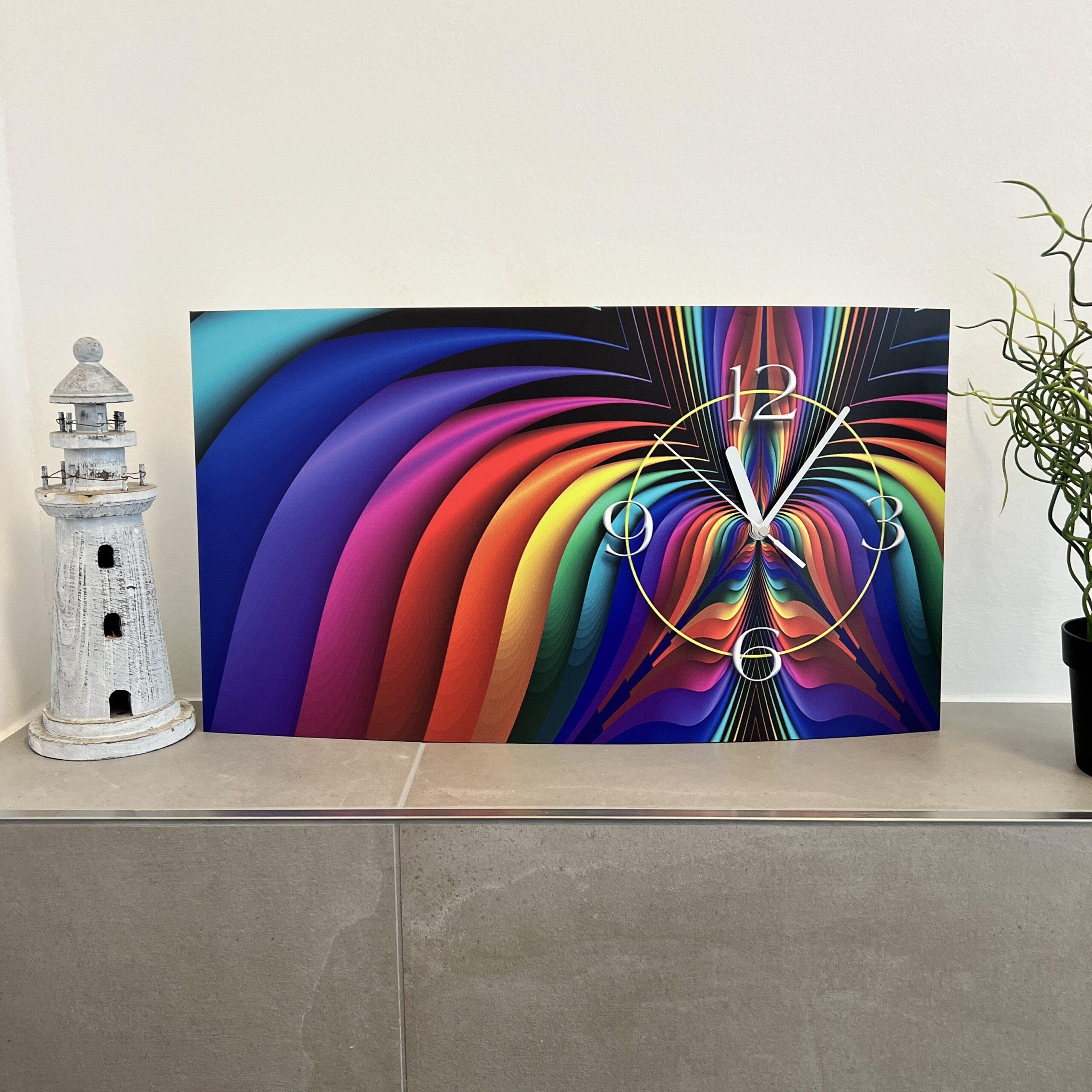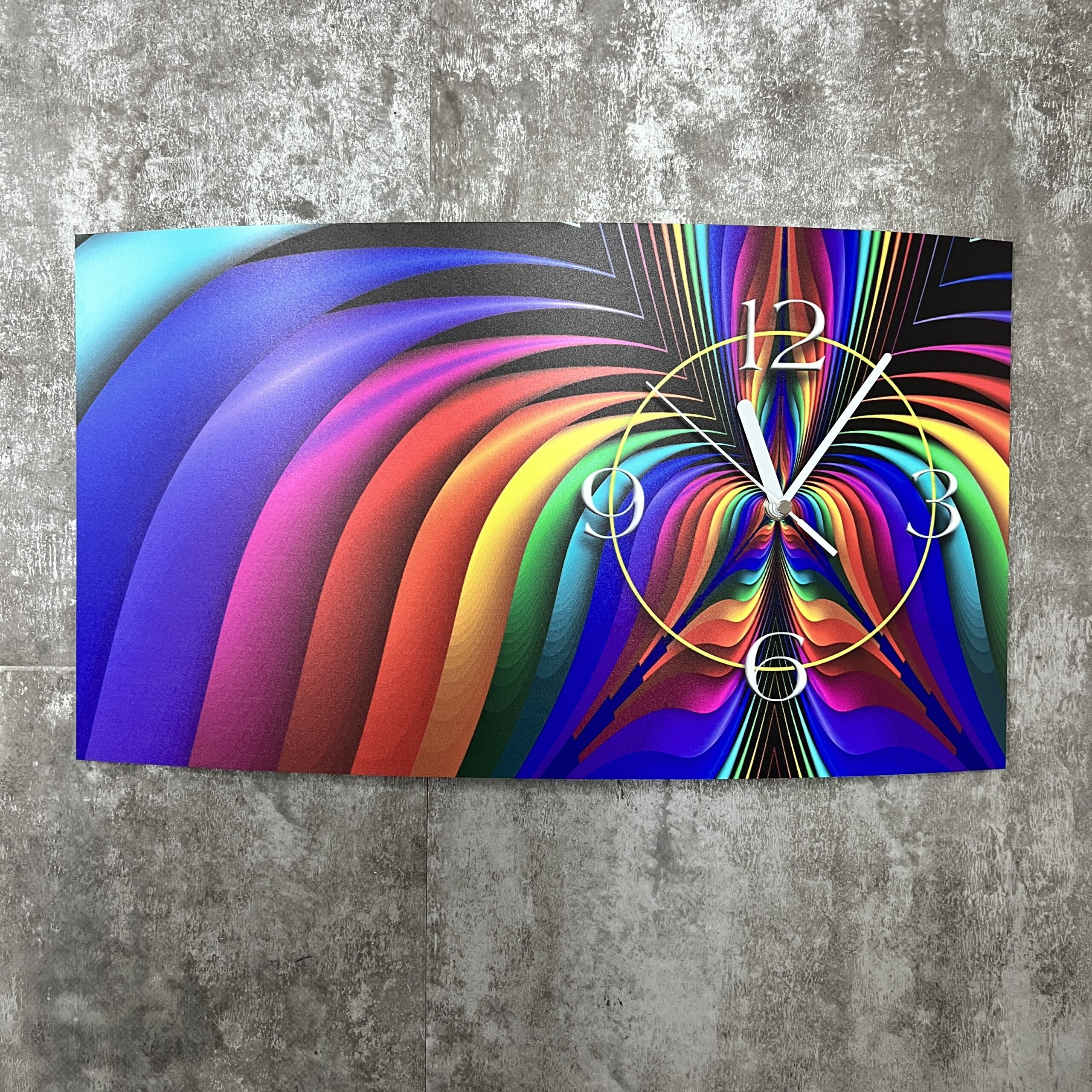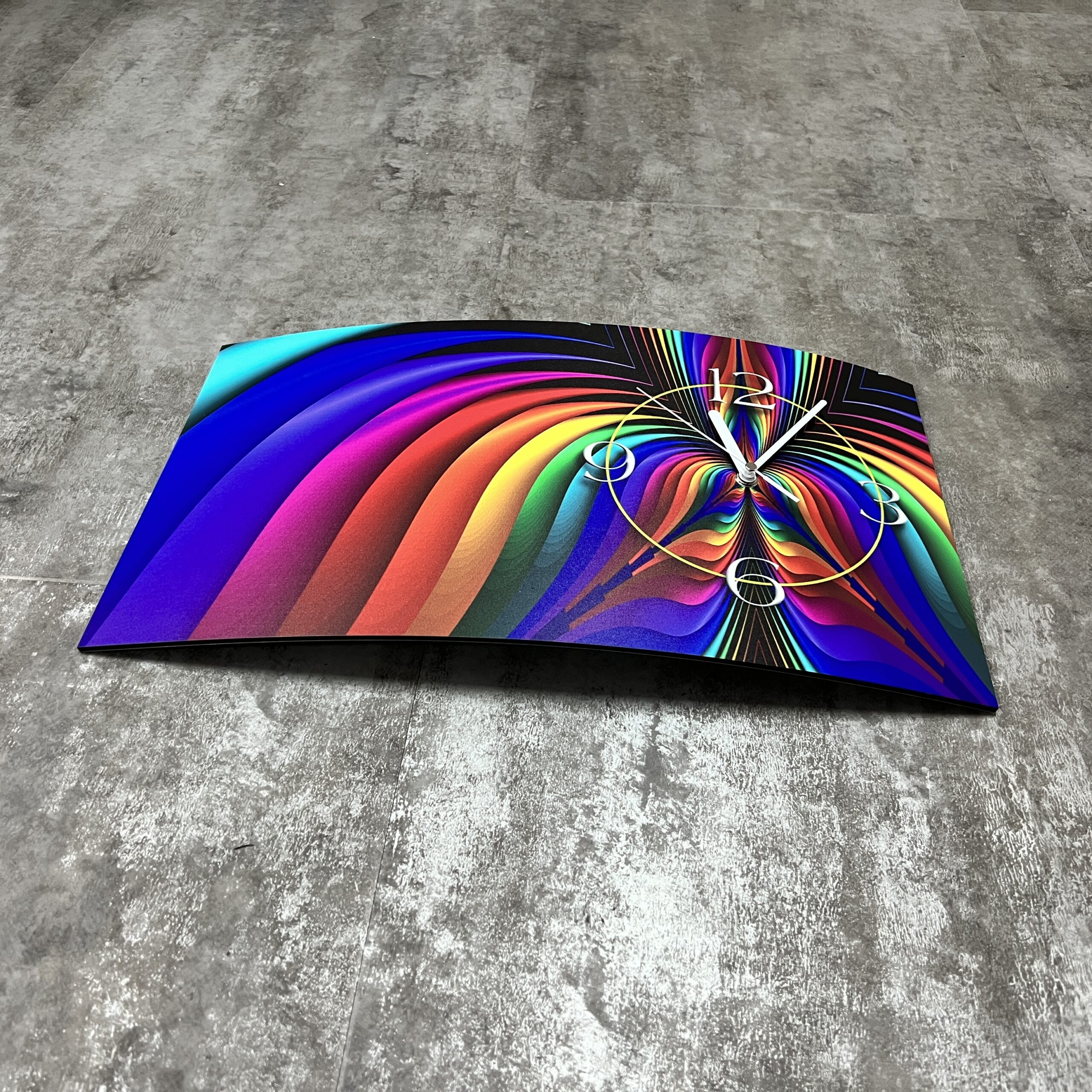 Das Alu-Dibond wird verformt, so dass die Uhr bei Ihnen an der Wand in einer 3D-Optik einen einzigartigen Effekt darbietet. Unsere dixtime® 3D-Wanduhr wird der Eye-Catcher in Ihren Räumen sein.