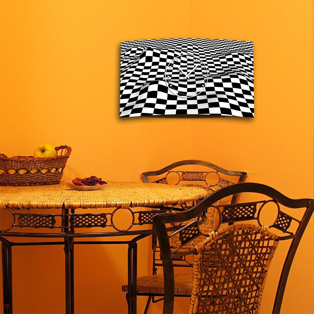 Karo schwarz weiß 2tone Designer Wanduhr modernes Wanduhren Design leise kein ticken dixtime 3DS-0154