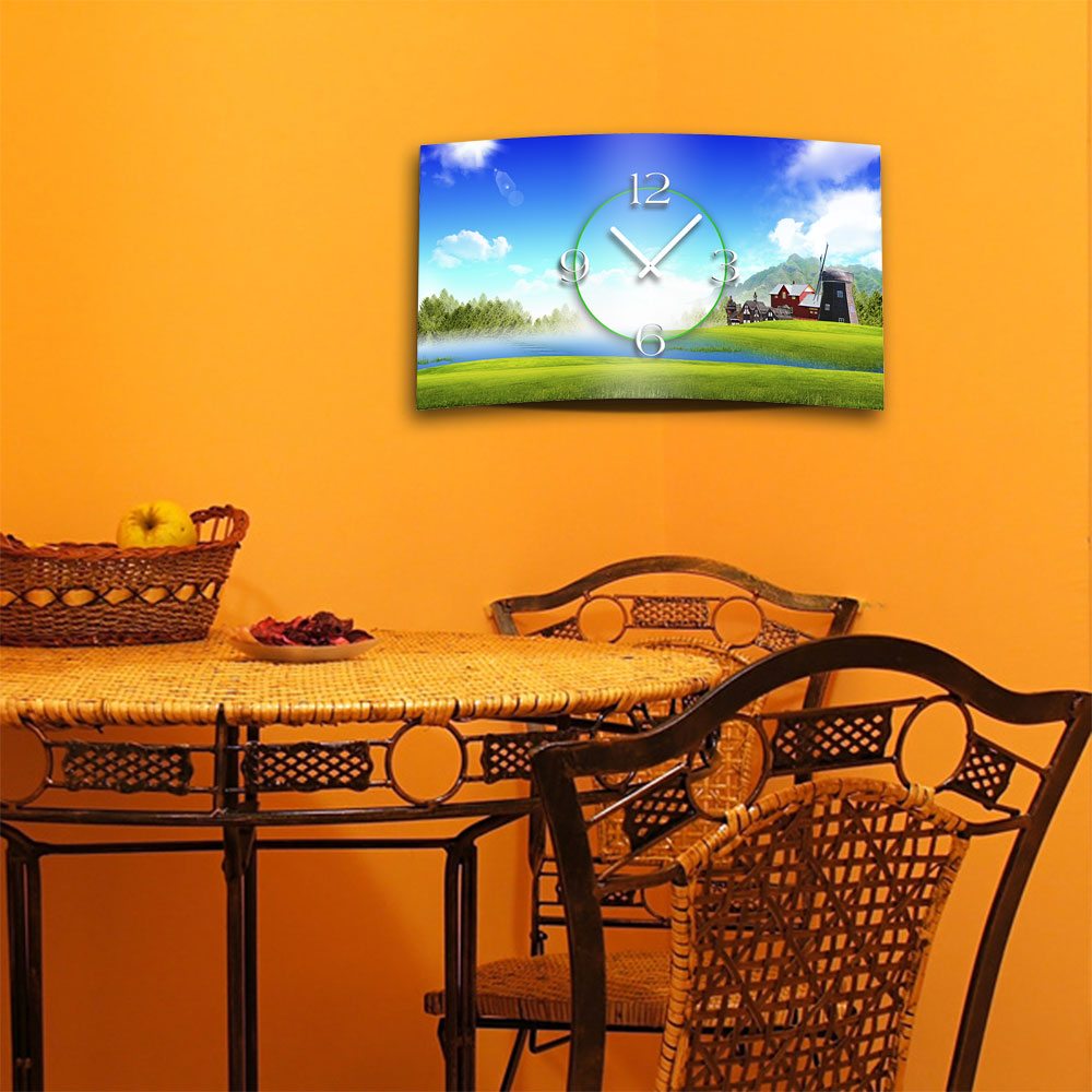 Landschaft Windmühle Designer Wanduhr modernes Wanduhren Design leise kein ticken dixtime 3DS-0073
