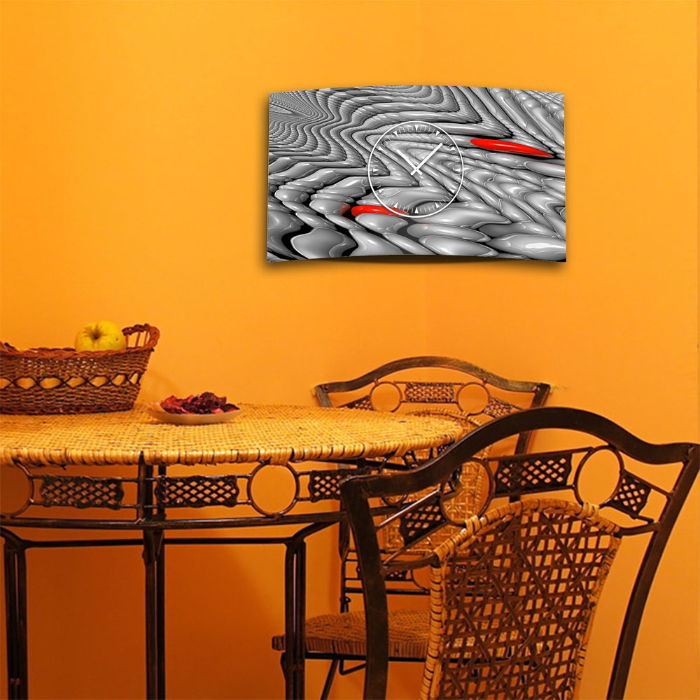 Das Alu-Dibond wird verformt, so dass die Uhr bei Ihnen an der Wand in einer 3D-Optik einen einzigartigen Effekt darbietet. Unsere dixtime® 3D-Wanduhr wird der Eye-Catcher in Ihren Räumen sein.