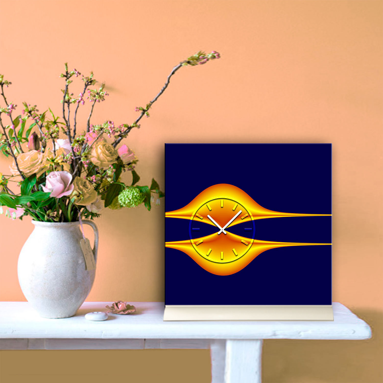 Tischuhr 30cmx30cm inkl. Alu-Ständer -edles Design blau orange geräuschloses Quarzuhrwerk -Kaminuhr-Standuhr TU3156 DIXTIME
