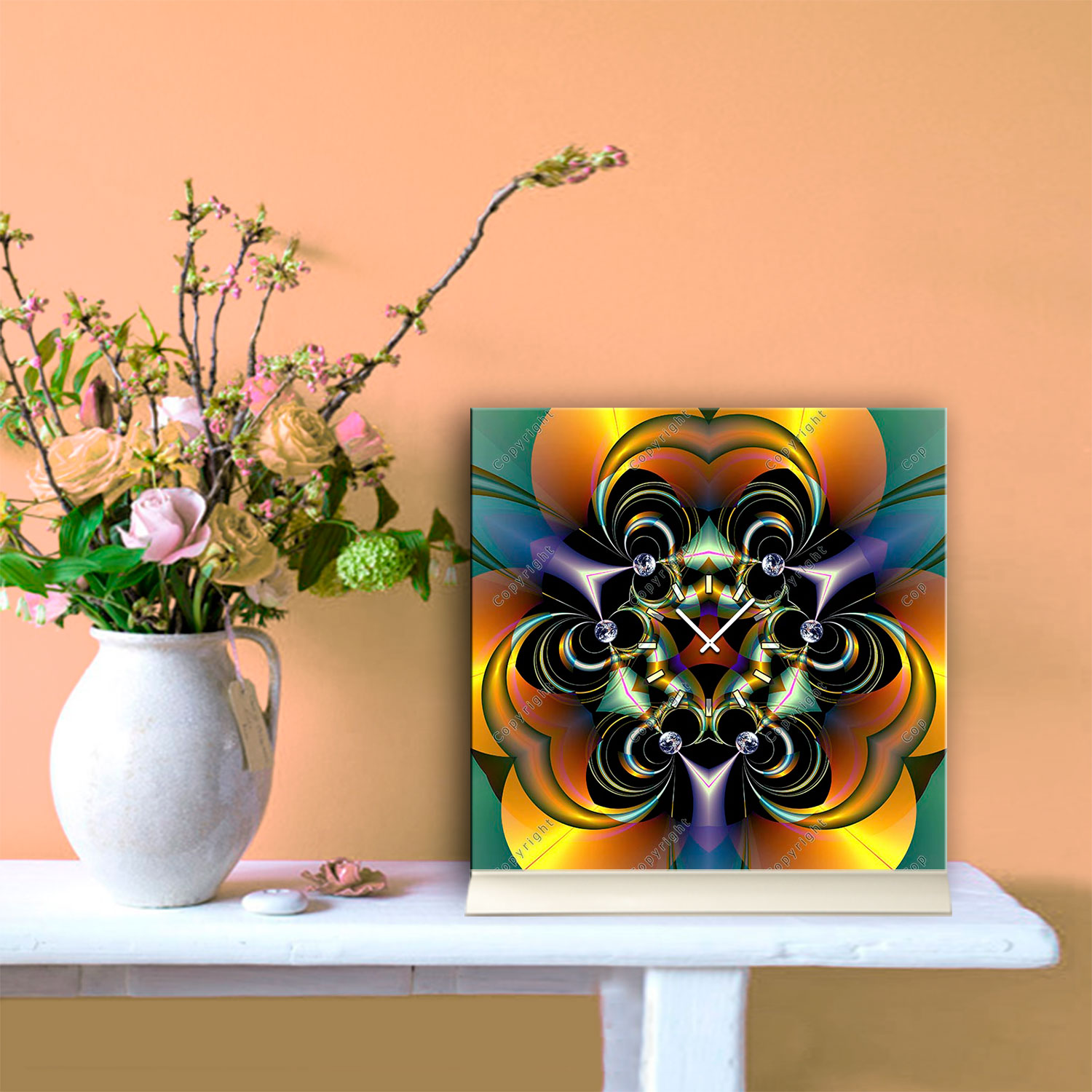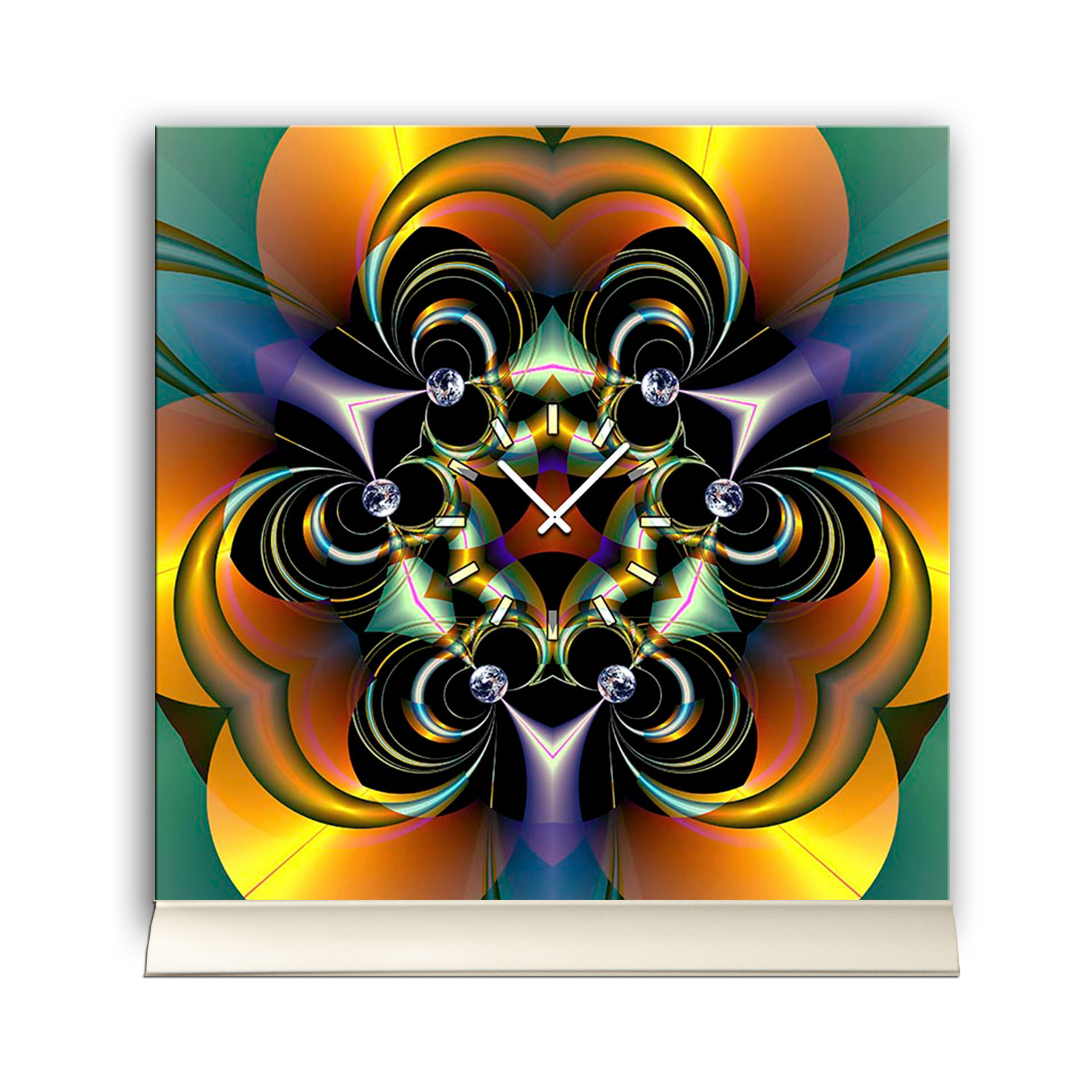 Das künstlerische Motiv wird auf eine hochwertige Aluminium-Dibond-Platte übertragen. Durch den hochauflösenden Digitaldruck besticht der Druck mit feinen Details und klaren Farben. Zudem werden die Oberflächen der Wanduhr mit einer seidenmatten, hauchdünnen, kratzfesten UV-Schutzfolie versehen. So ist die Uhr langfristig geschützt und es entstehen keine störenden Spiegelungen. Die ökologischen Latextinten sind zudem besonders geeignete Materialien für eine langlebige und gestochen scharfe Bildqualität.