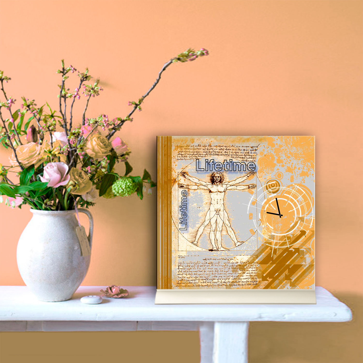 Das künstlerische Motiv wird auf eine hochwertige Aluminium-Dibond-Platte übertragen. Durch den hochauflösenden Digitaldruck besticht der Druck mit feinen Details und klaren Farben. Zudem werden die Oberflächen der Wanduhr mit einer seidenmatten, hauchdünnen, kratzfesten UV-Schutzfolie versehen. So ist die Uhr langfristig geschützt und es entstehen keine störenden Spiegelungen. Die ökologischen Latextinten sind zudem besonders geeignete Materialien für eine langlebige und gestochen scharfe Bildqualität.