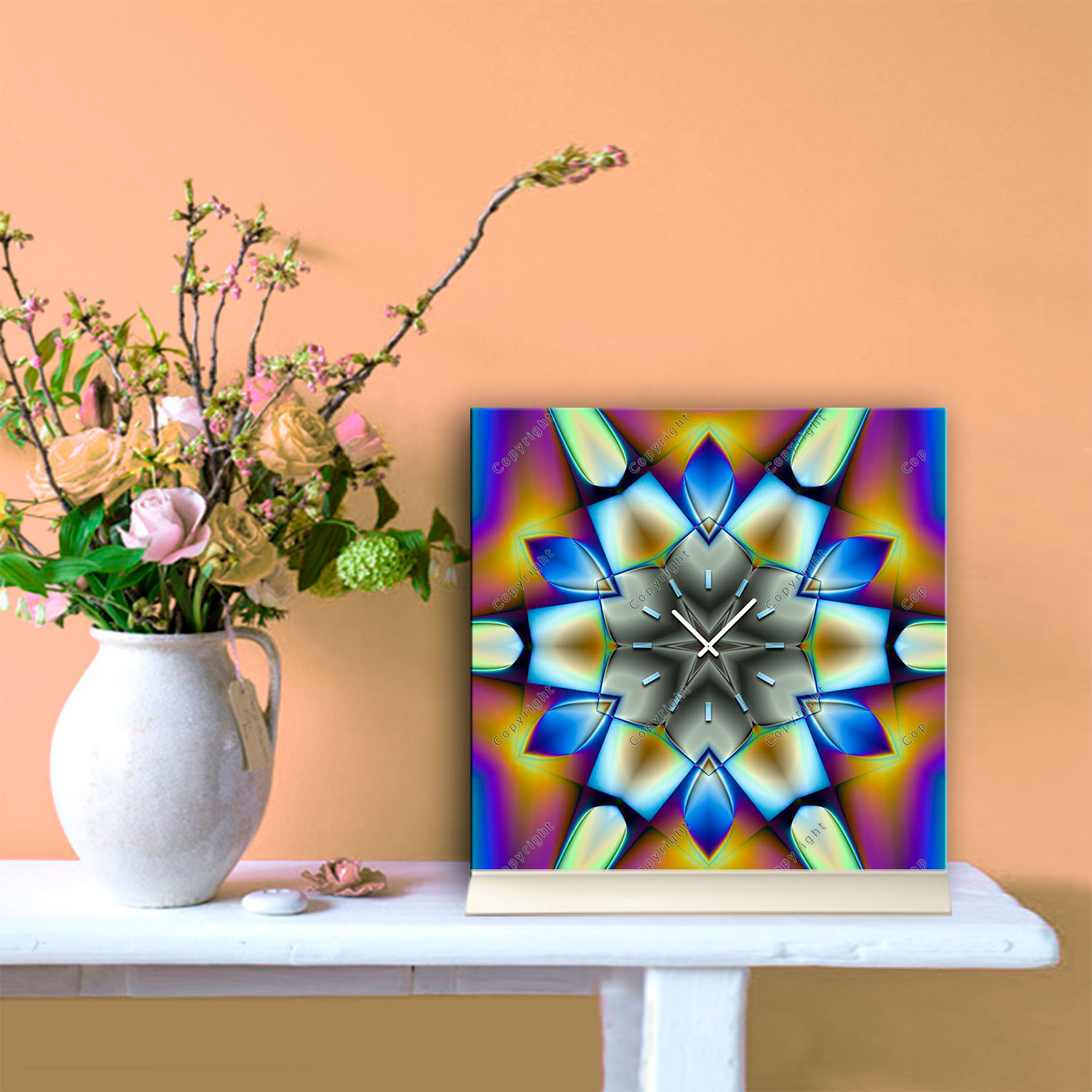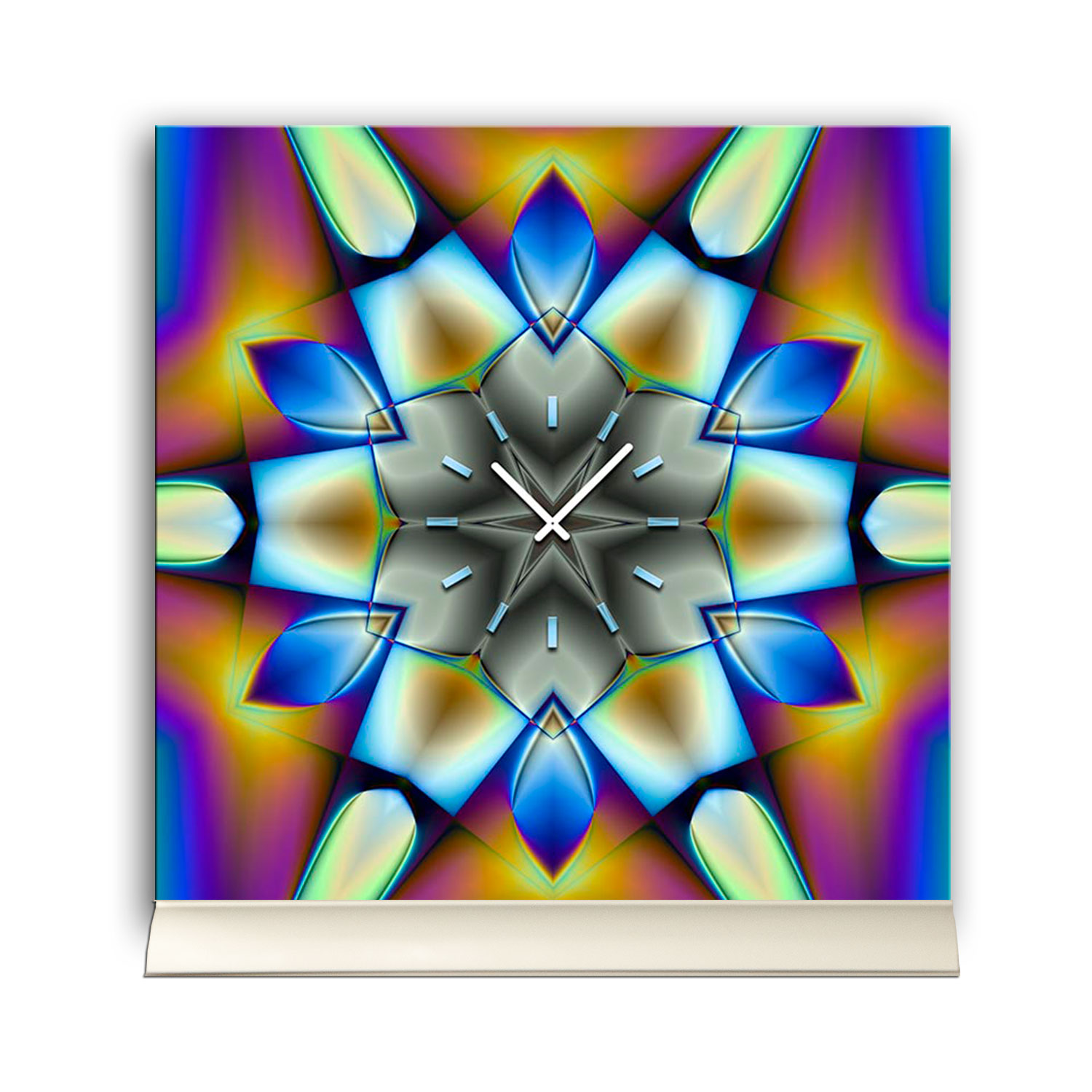 Das künstlerische Motiv wird auf eine hochwertige Aluminium-Dibond-Platte übertragen. Durch den hochauflösenden Digitaldruck besticht der Druck mit feinen Details und klaren Farben. Zudem werden die Oberflächen der Wanduhr mit einer seidenmatten, hauchdünnen, kratzfesten UV-Schutzfolie versehen. So ist die Uhr langfristig geschützt und es entstehen keine störenden Spiegelungen. Die ökologischen Latextinten sind zudem besonders geeignete Materialien für eine langlebige und gestochen scharfe Bildqualität.