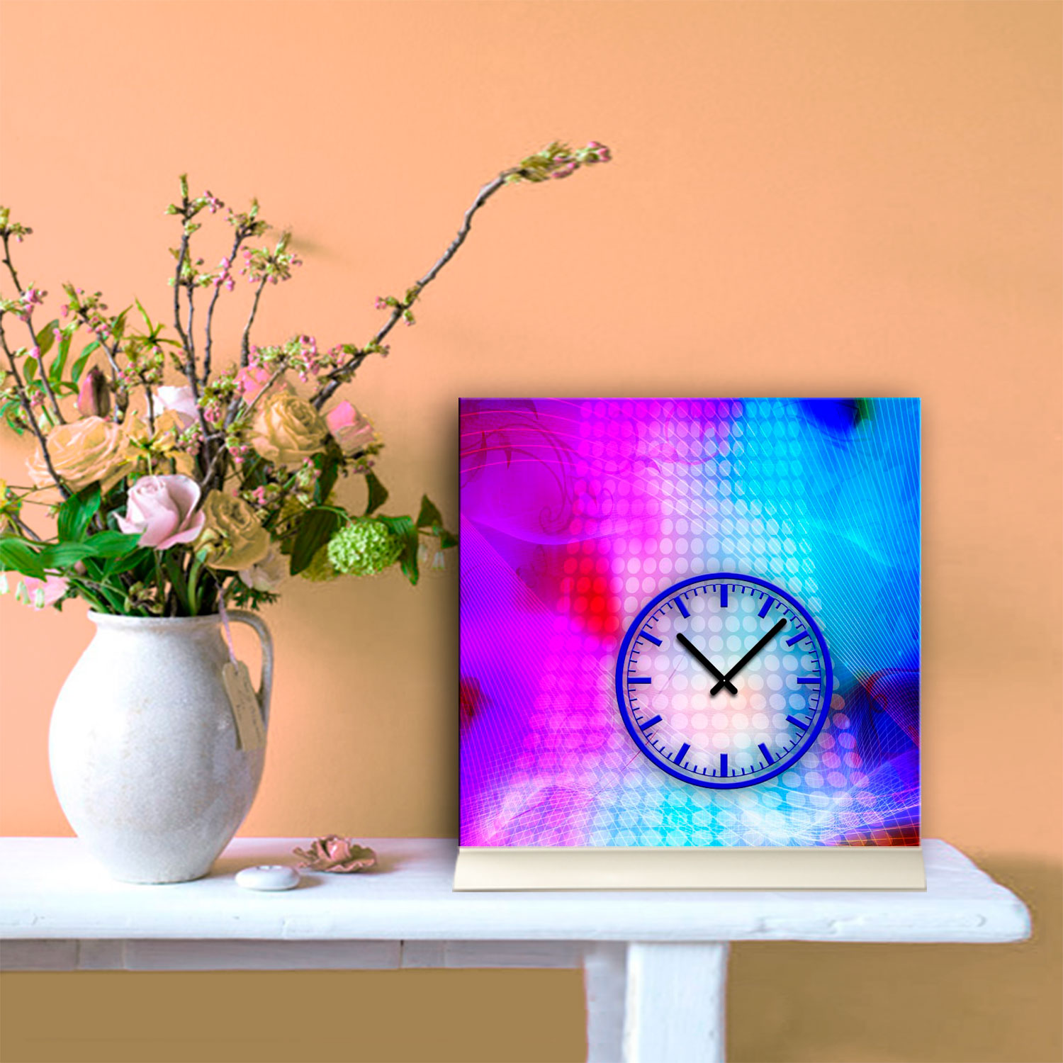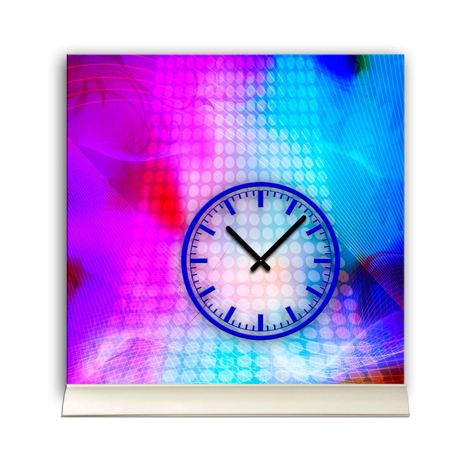 Tischuhr 30cmx30cm inkl. Alu-Ständer -modernes Design pink türkis geräuschloses Quarzuhrwerk -Wanduhr-Standuhr TU3416 DIXTIME