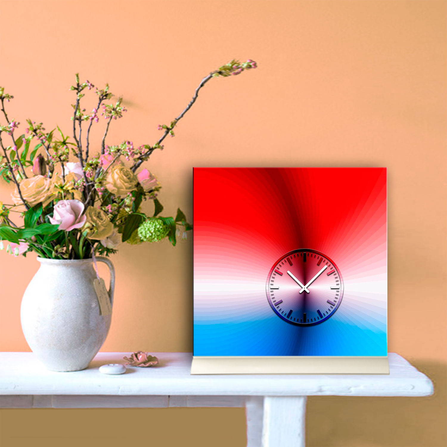 Tischuhr 30cmx30cm inkl. Alu-Ständer -schlichtes zeitloses Design rot blau geräuschloses Quarzuhrwerk - Kaminuhr-Standuhr TU3078 DIXTIME