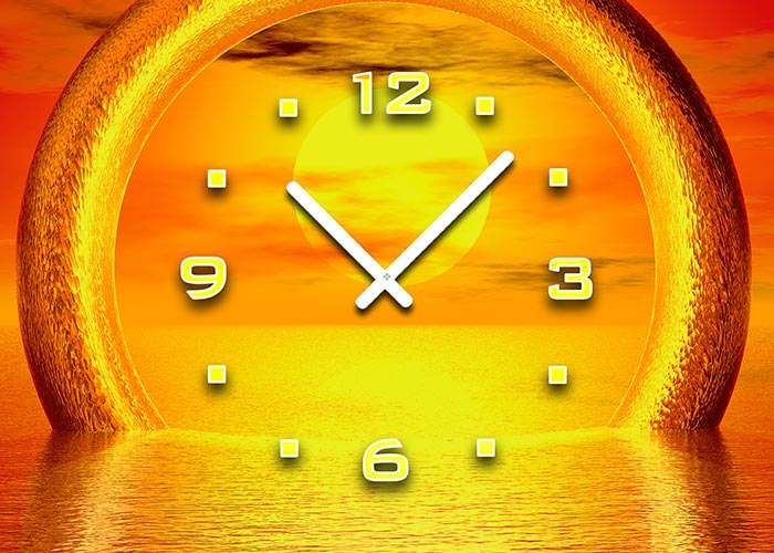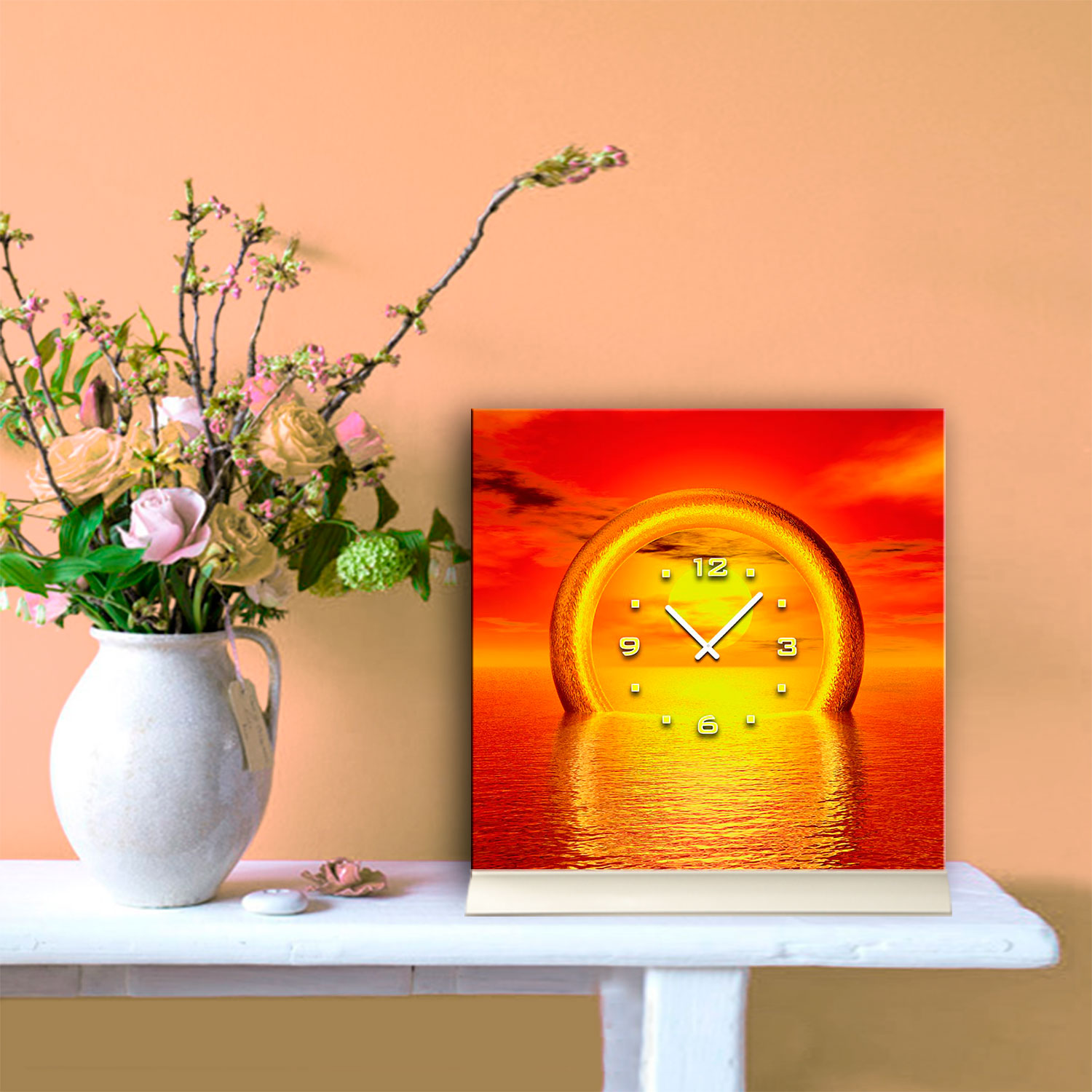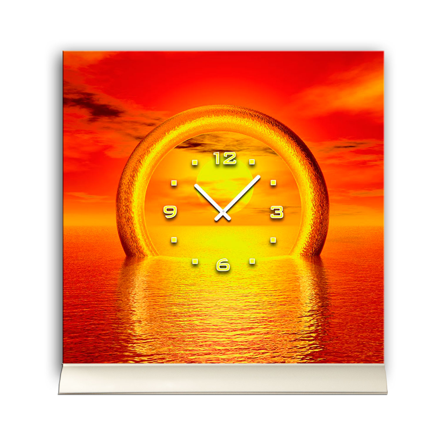 Tischuhr 30cmx30cm inkl. Alu-Ständer -Sonnenuntergang orange geräuschloses Quarzuhrwerk -Kaminuhr-Standuhr TU3088 DIXTIME