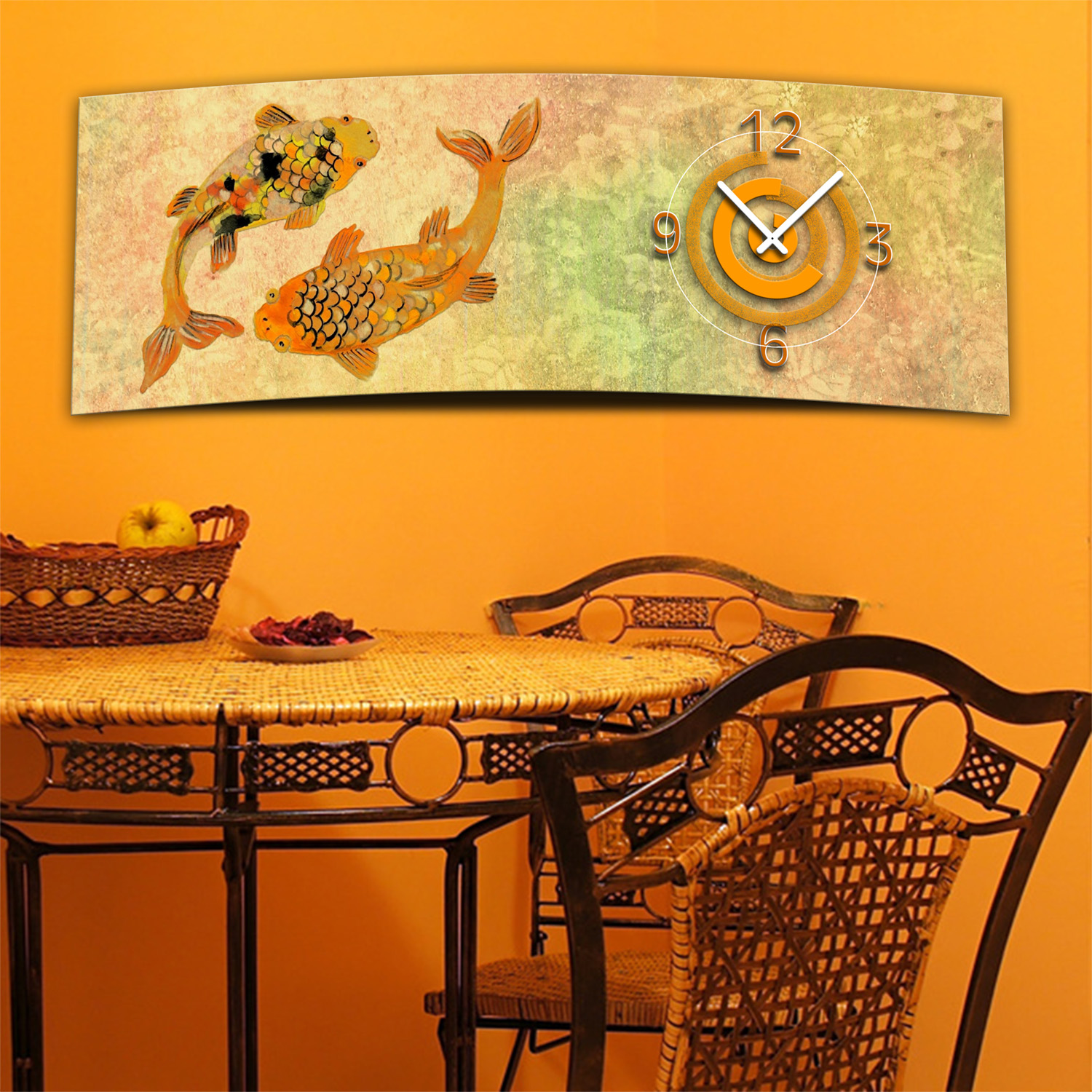 Wanduhr XXL 3D Optik Dixtime asiatisch Fische 30x90 cm leises Uhrwerk GL-011