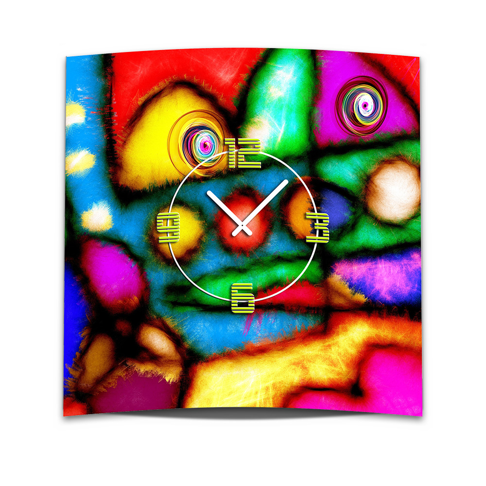 Wanduhr XXL 3D Optik Dixtime bunte Flicken 50x50 cm leises Uhrwerk GQ-010