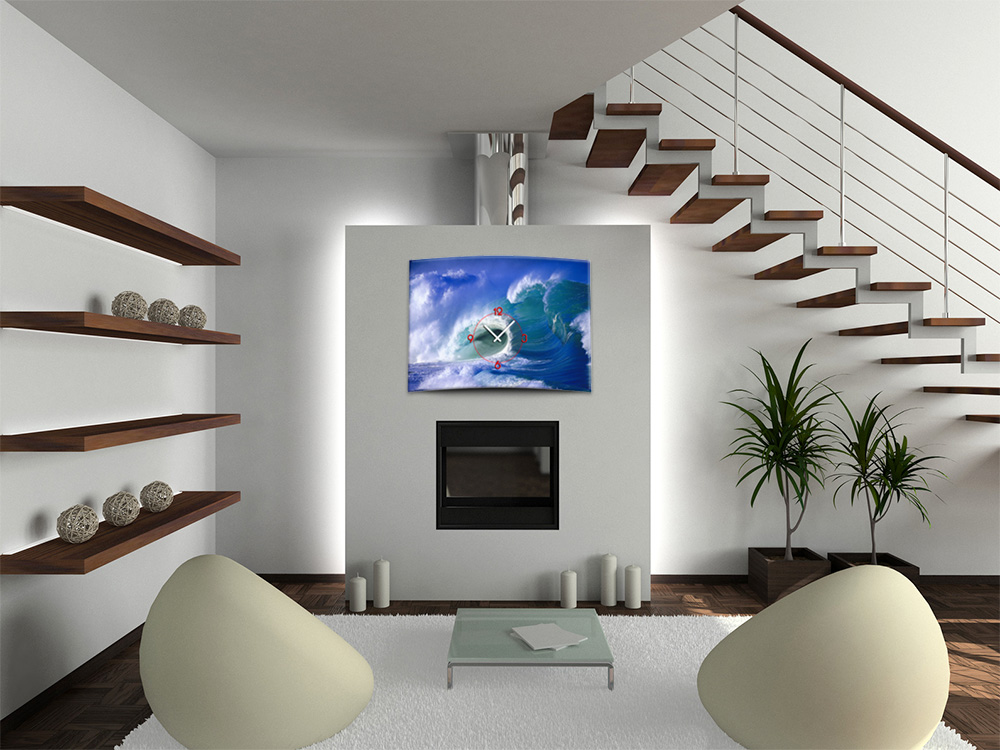 Wanduhr XXL 3D Optik Dixtime Meer Welle 50x70 cm leises Uhrwerk GR-023