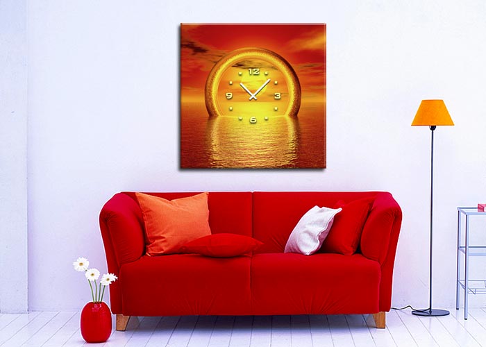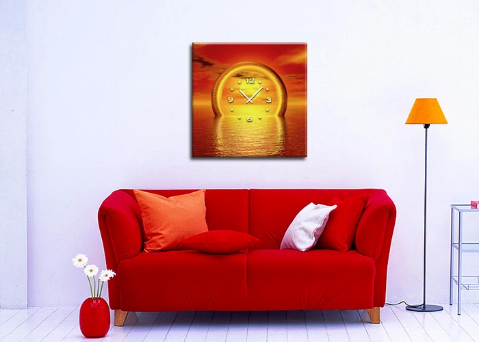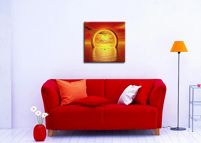 3088 Dixtime Designer Wanduhr, Sonnenuntergang, quadratische Wanduhren, traumhafte Wohnraumuhr,