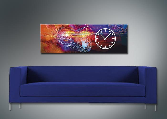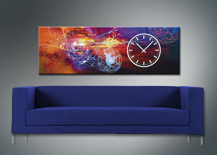 Das künstlerische Motiv wird auf eine hochwertige Aluminium-Dibond-Platte übertragen. Durch den hochauflösenden Digitaldruck besticht der Druck mit feinen Details und klaren Farben. Zudem werden die Oberflächen der Wanduhr mit einer seidenmatten, hauchdünnen, kratzfesten UV-Schutzfolie versehen. So ist die Uhr langfristig geschützt und es entstehen keine störenden Spiegelungen. Die ökologischen Latextinten sind zudem besonders geeignete Materialien für eine langlebige und gestochen scharfe Bildqualität.