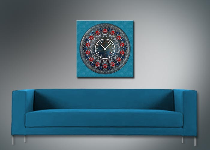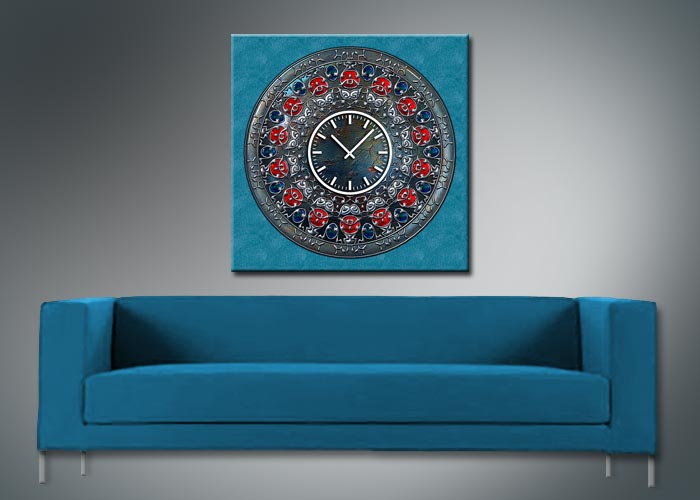 Das künstlerische Motiv wird auf eine hochwertige Aluminium-Dibond-Platte übertragen. Durch den hochauflösenden Digitaldruck besticht der Druck mit feinen Details und klaren Farben. Zudem werden die Oberflächen der Wanduhr mit einer seidenmatten, hauchdünnen, kratzfesten UV-Schutzfolie versehen. So ist die Uhr langfristig geschützt und es entstehen keine störenden Spiegelungen. Die ökologischen Latextinten sind zudem besonders geeignete Materialien für eine langlebige und gestochen scharfe Bildqualität.
