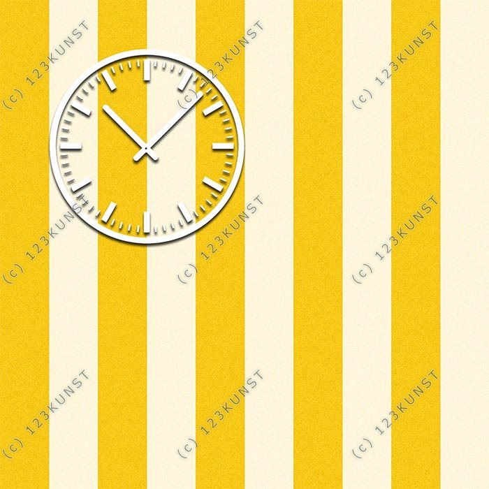 Das künstlerische Motiv wird auf eine hochwertige Aluminium-Dibond-Platte übertragen. Durch den hochauflösenden Digitaldruck besticht der Druck mit feinen Details und klaren Farben. Zudem werden die Oberflächen der Wanduhr mit einer seidenmatten, hauchdünnen, kratzfesten UV-Schutzfolie versehen. So ist die Uhr langfristig geschützt und es entstehen keine störenden Spiegelungen. Die ökologischen Latextinten sind zudem besonders geeignete Materialien für eine langlebige und gestochen scharfe Bildqualität.