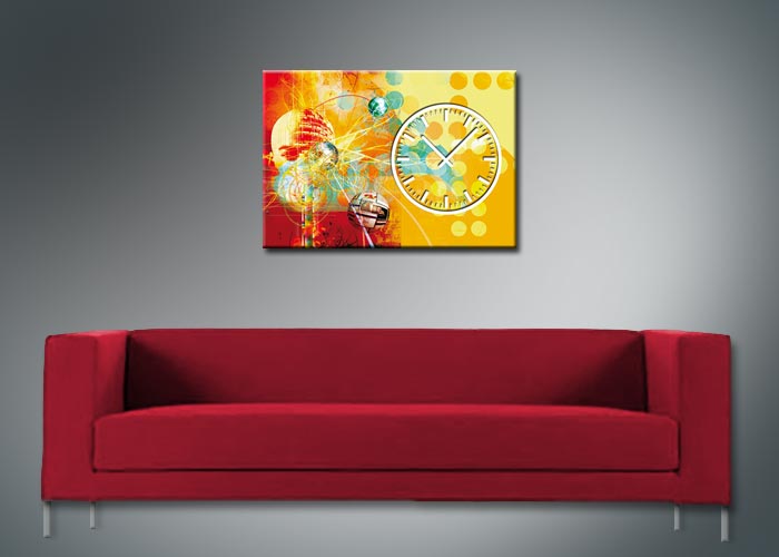 Das künstlerische Motiv wird auf eine hochwertige Aluminium-Dibond-Platte übertragen. Durch den hochauflösenden Digitaldruck besticht der Druck mit feinen Details und klaren Farben. Zudem werden die Oberflächen der Wanduhr mit einer seidenmatten, hauchdünnen, kratzfesten UV-Schutzfolie versehen. So ist die Uhr langfristig geschützt und es entstehen keine störenden Spiegelungen. Die ökologischen Latextinten sind zudem besonders geeignete Materialien für eine langlebige und gestochen scharfe Bildqualität.