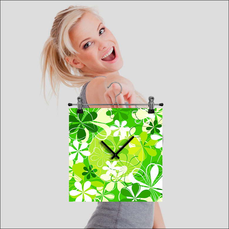 Das künstlerische Motiv wird auf eine hochwertige Aluminium-Dibond-Platte übertragen. Durch den hochauflösenden Digitaldruck besticht der Druck mit feinen Details und klaren Farben. Zudem werden die Oberflächen der Wanduhr mit einer seidenmatten, hauchdünnen, kratzfesten UV-Schutzfolie versehen. So ist die Uhr langfristig geschützt und es entstehen keine störenden Spiegelungen. Die ökologischen Latextinten sind zudem besonders geeignete Materialien für eine langlebige und gestochen scharfe Bildqualität.