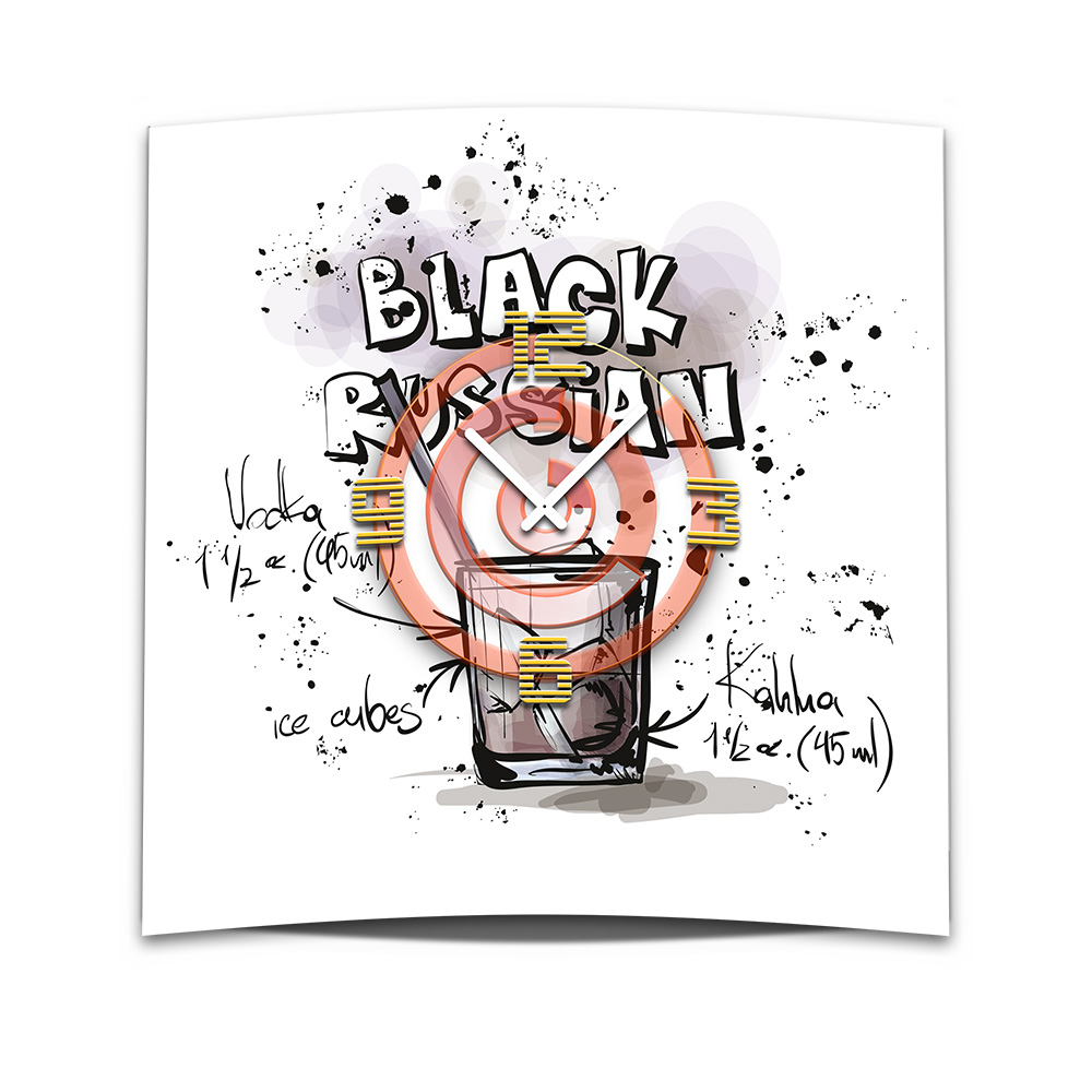 Wanduhr XXL 3D Optik Dixtime Cocktail Black Russian 50x50 cm leises Uhrwerk GQ-022