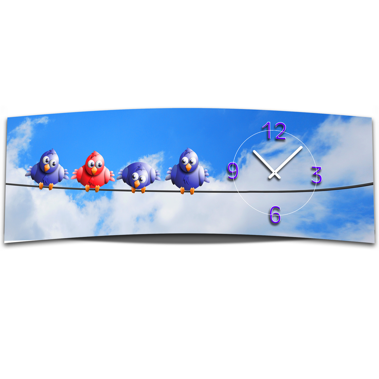 Wanduhr XXL 3D Optik Dixtime Himmel Vögel 30x90 cm leises Uhrwerk GL-003