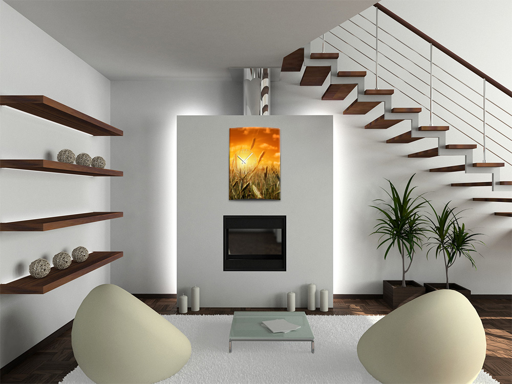 Wanduhr XXL 3D Optik Dixtime Sonnenuntergang Kornfeld 50x70 cm leises Uhrwerk GR-020