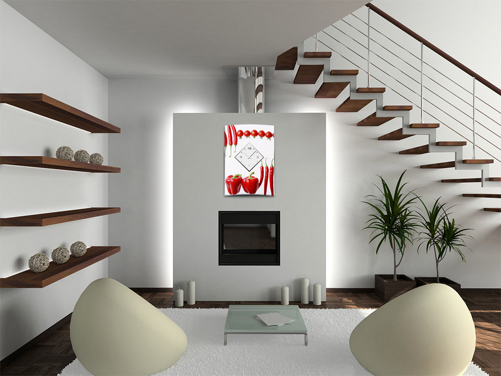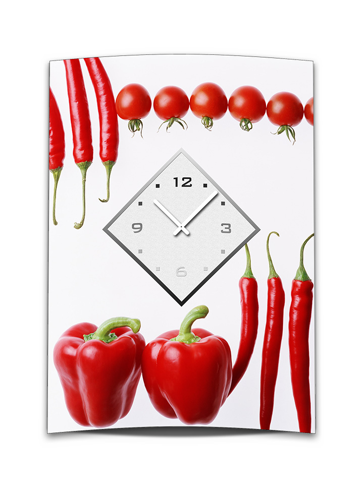 Wanduhr XXL 3D Optik Dixtime Tomate Paprika Chili 50x70 cm leises Uhrwerk GR-036